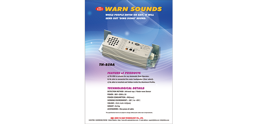 - TH-850 is suitable for any Automatic Door Operator.